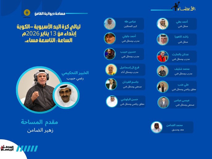تعود مساحة ديوانية الضامن الصوتية إلى المشهد الإعلامي مجددًا، لمواكبة الركض الآسيوي لكرة اليد، عبر نقاشات متخصصة تسلّط الضوء على أبرز الأحداث الرياضية في اللعبة، من الجوانب الفنية والتكتيكية والتحكيمية.