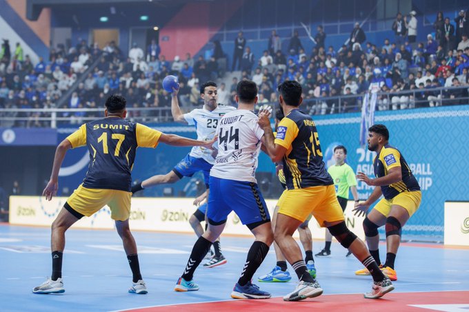 دشّن المنتخب الكويتي لكرة اليد مشواره في بطولة آسيا الثانية والعشرين للرجال، المقامة حاليًا في الكويت خلال الفترة من 15 إلى 29 من الشهر الجاري، بفوزٍ عريض ومستحق على المنتخب الهندي بنتيجة 46–12، بعد أن حسم الشوط الأول مبكرًا لمصلحته بنتيجة 26–6، ليتصدر «الأزرق» المجموعة الثالثة بفارق الأهداف عن المنتخب الإماراتي.
