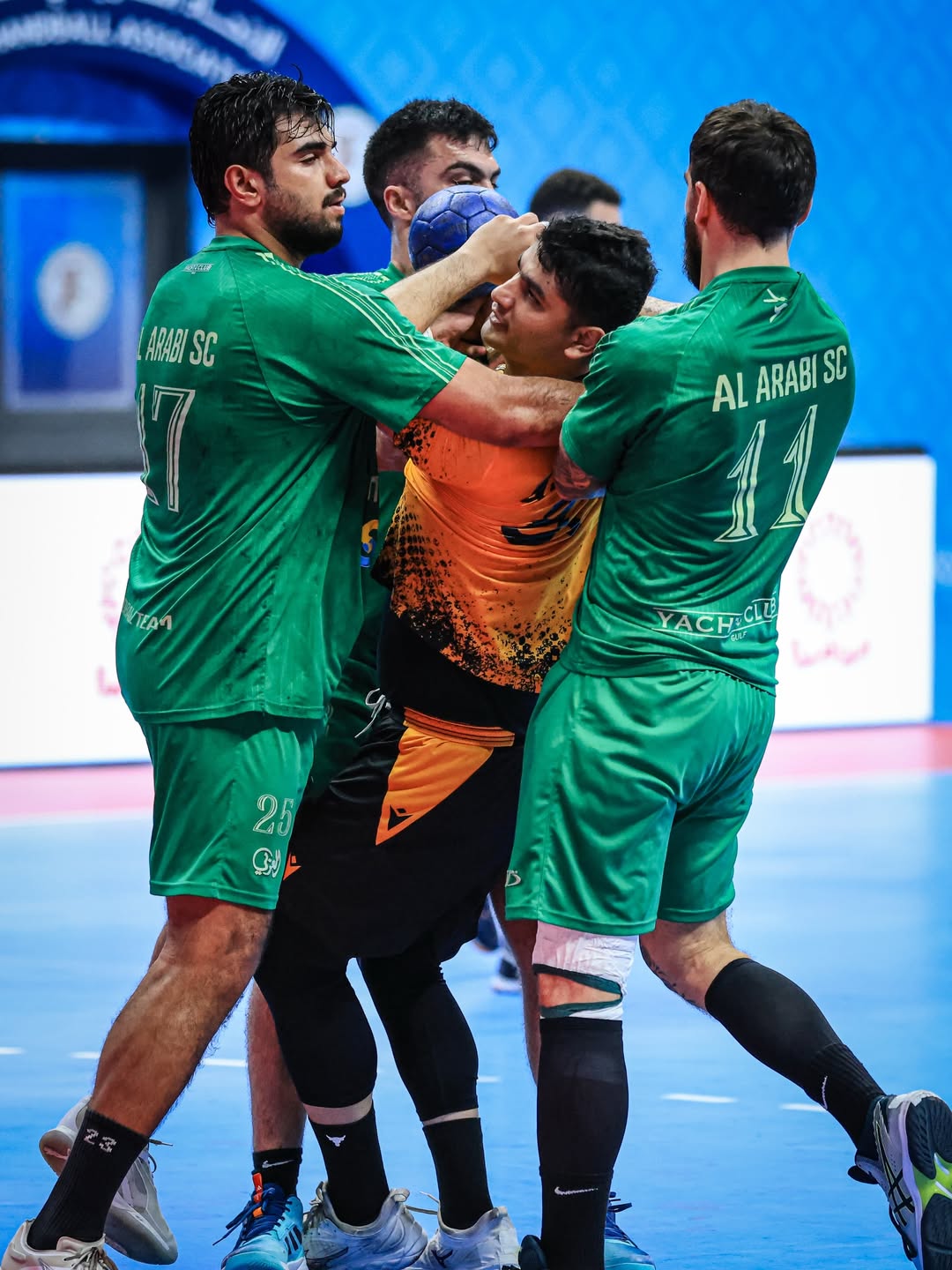 في المقابل، فرض العربي سيطرته على مواجهة القادسية ، حاسماً اللقاء بنتيجة 26-20 بعد شوط أول منظم 13-11. تألق الدفاع العربي وحارس الفريق سليمان حيدر كان له الدور الأكبر في إيقاف محاولات القادسية، فيما ساهم الأداء الجماعي والانضباط التكتيكي في حسم المواجهة لصالح العربي.