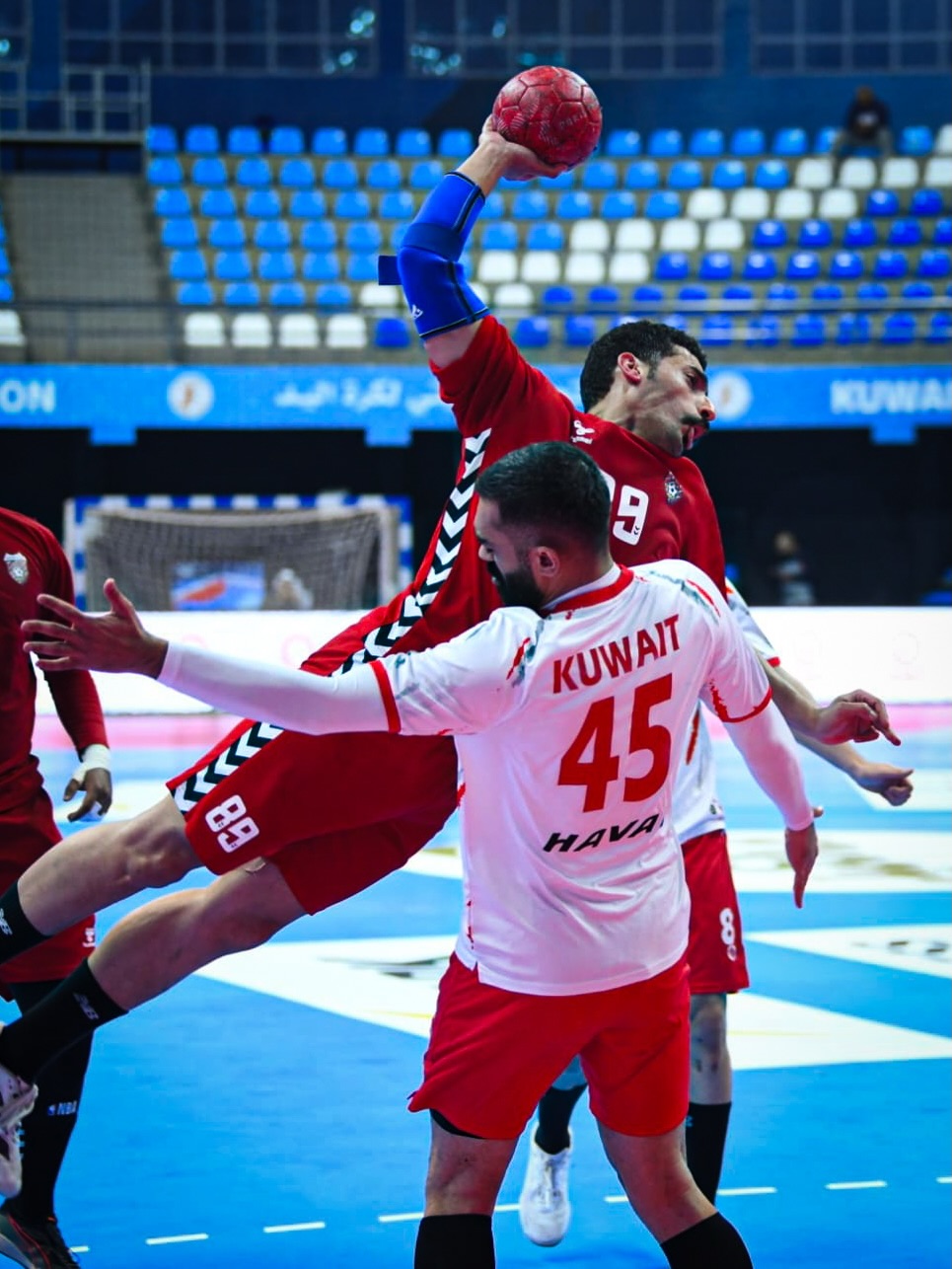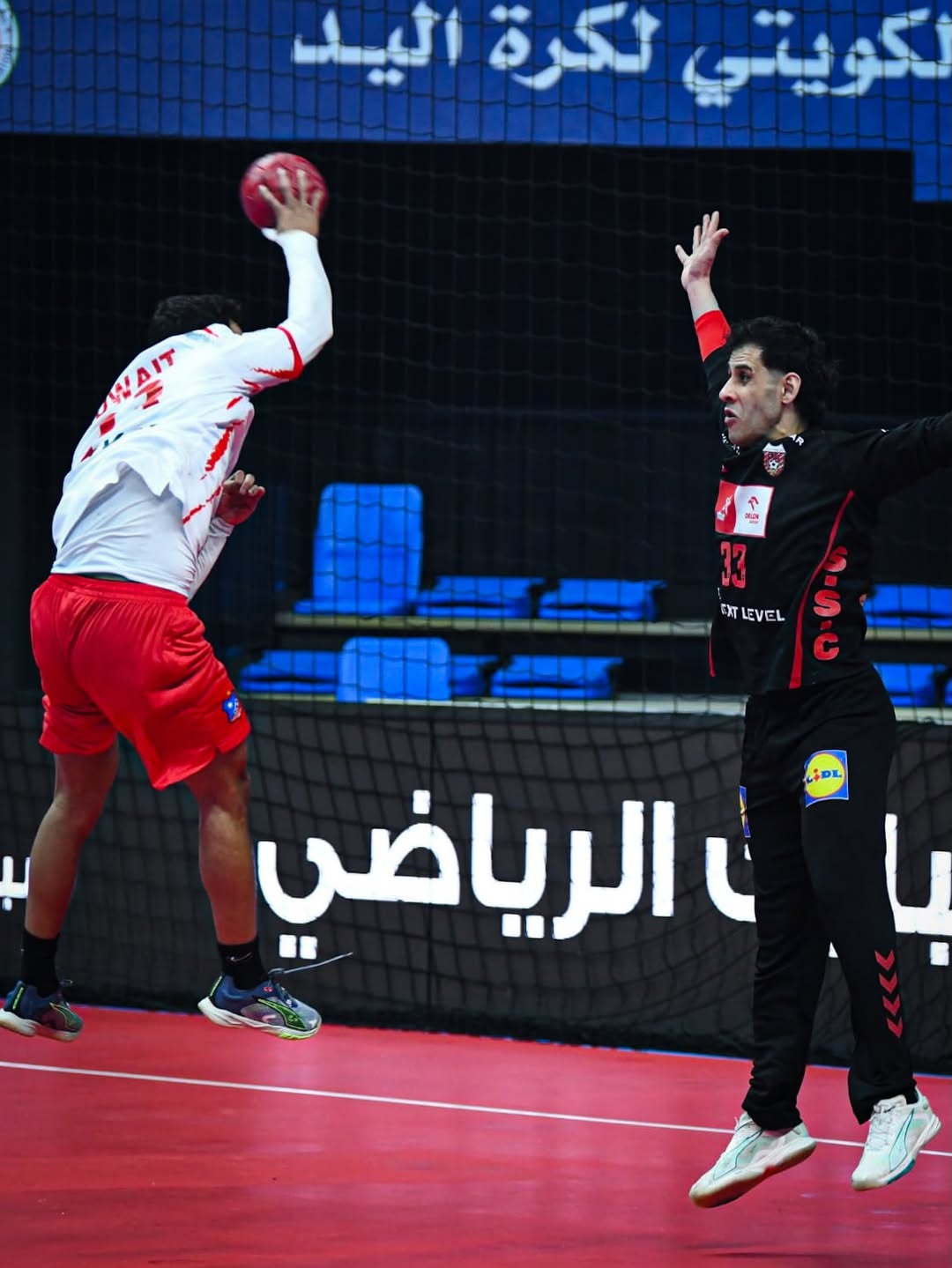 دفاعياً، لعب الكويت بقوة أكبر والتحام أعلى من خلال تطبيق دفاع 6-0 متقدم على منطقة مناورة الصليبيخات، على عكس الصليبيخات الذي اعتمد على الأسلوب نفسه، لكن مع وجود ثغرات في العمق الدفاعي وعدم انسجام في التغطية، ما انعكس على الأداء الهجومي من خلال البطء في التحضير، والاعتماد على اللعب داخل خط الستة أمتار، إضافة إلى التمريرات المقطوعة والأخطاء الهجومية، وهو ما ساهم في اتساع الفارق لمصلحة الكويت مع نهاية الشوط الأول.
