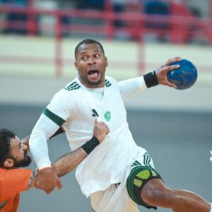 فوز الأهلي على مضر بنتيجة 34 – 25.
