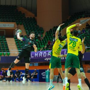 فوز الأهلي على مضر بنتيجة 34 – 25.
