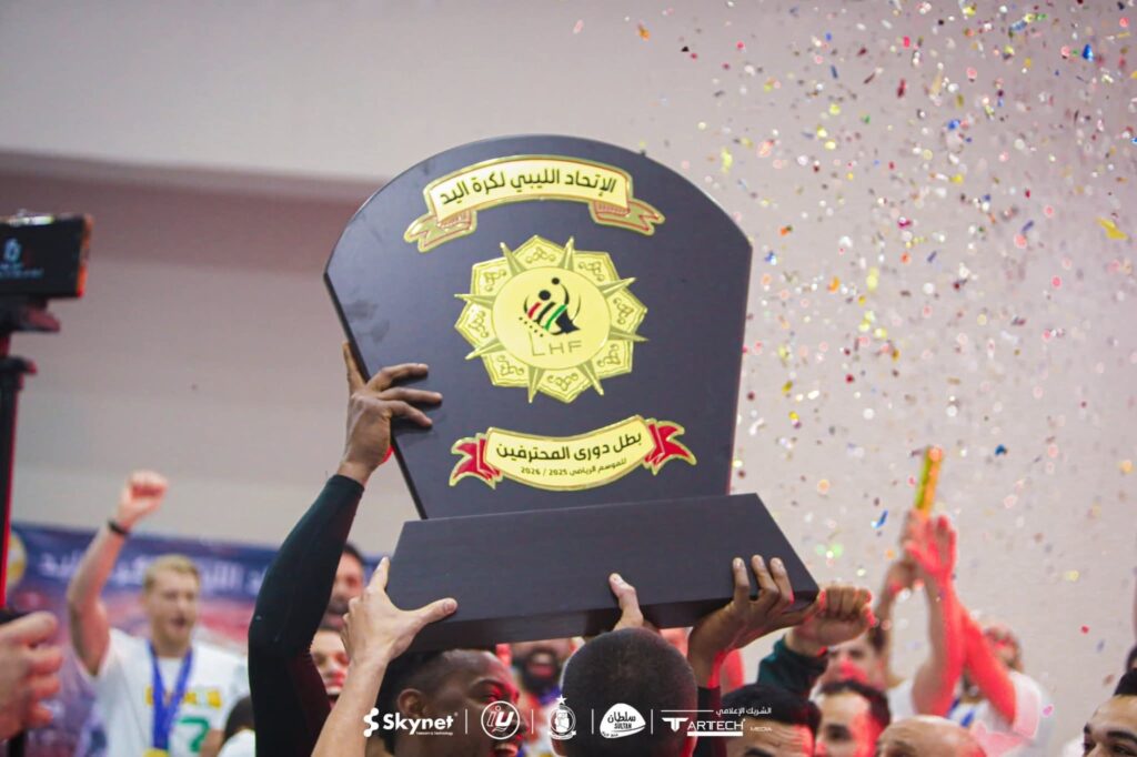 تُوج الأهلي طرابلس ببطولة الدوري الليبي لكرة اليد للموسم الرياضي 2026/2025 بعد فوزه على الأهلي بنغازي في آخر جولة من نهائيات بطولة ليبيا “سداسي التتويج” .